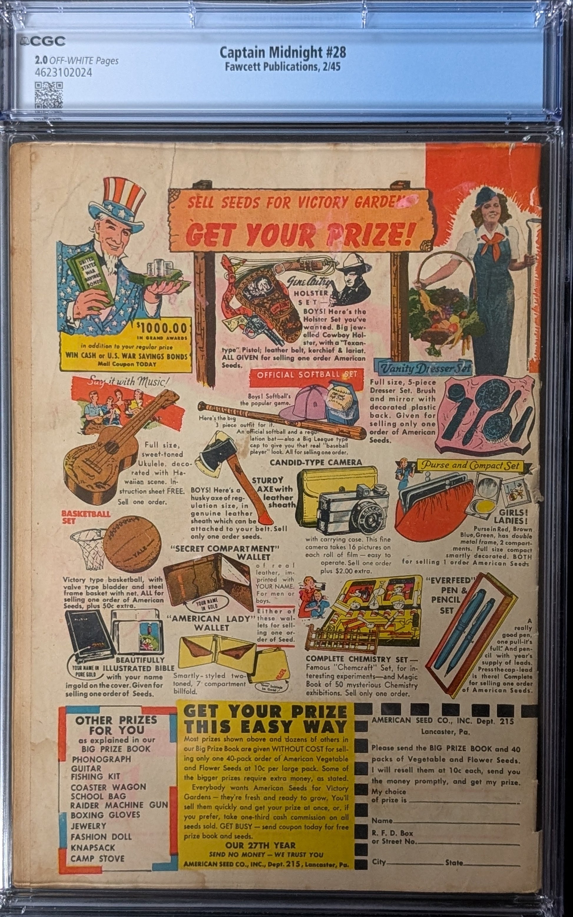 Captain Midnight #28 just graded by CGC at a 2.0 (Good) from 1945. Fawcett Publications