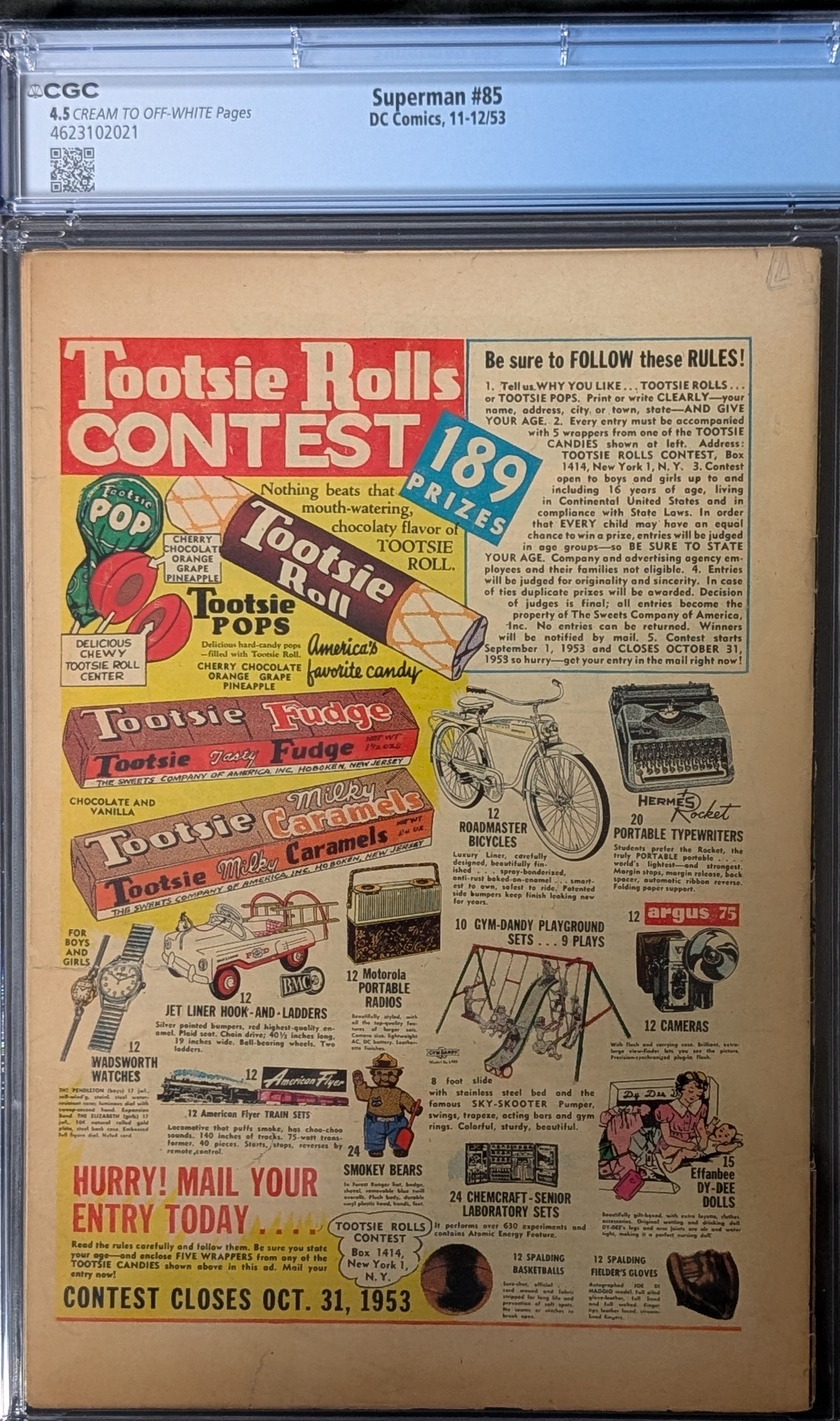 Superman # 85 just graded by CGC at a 4.5 (VG+) from 1953.