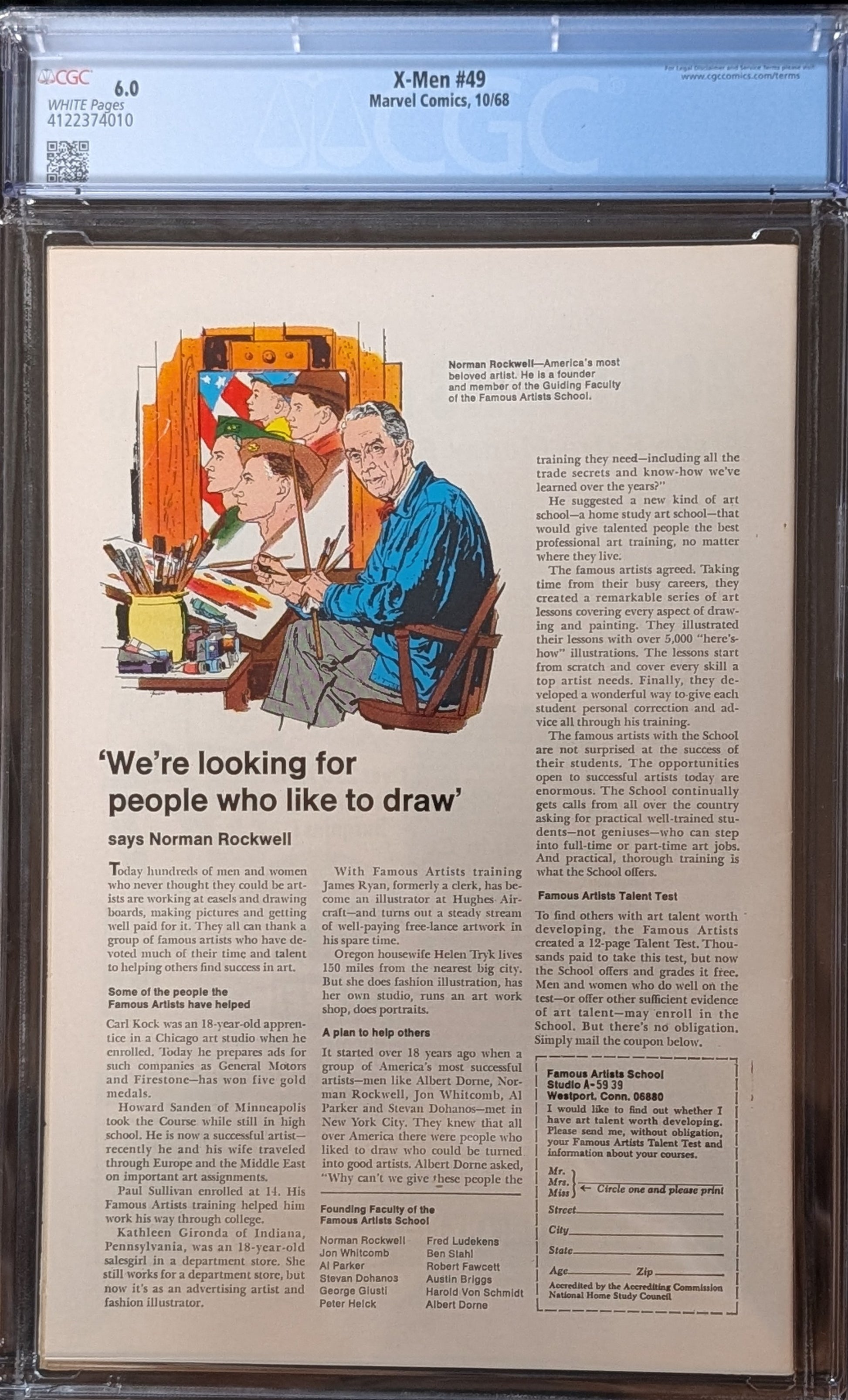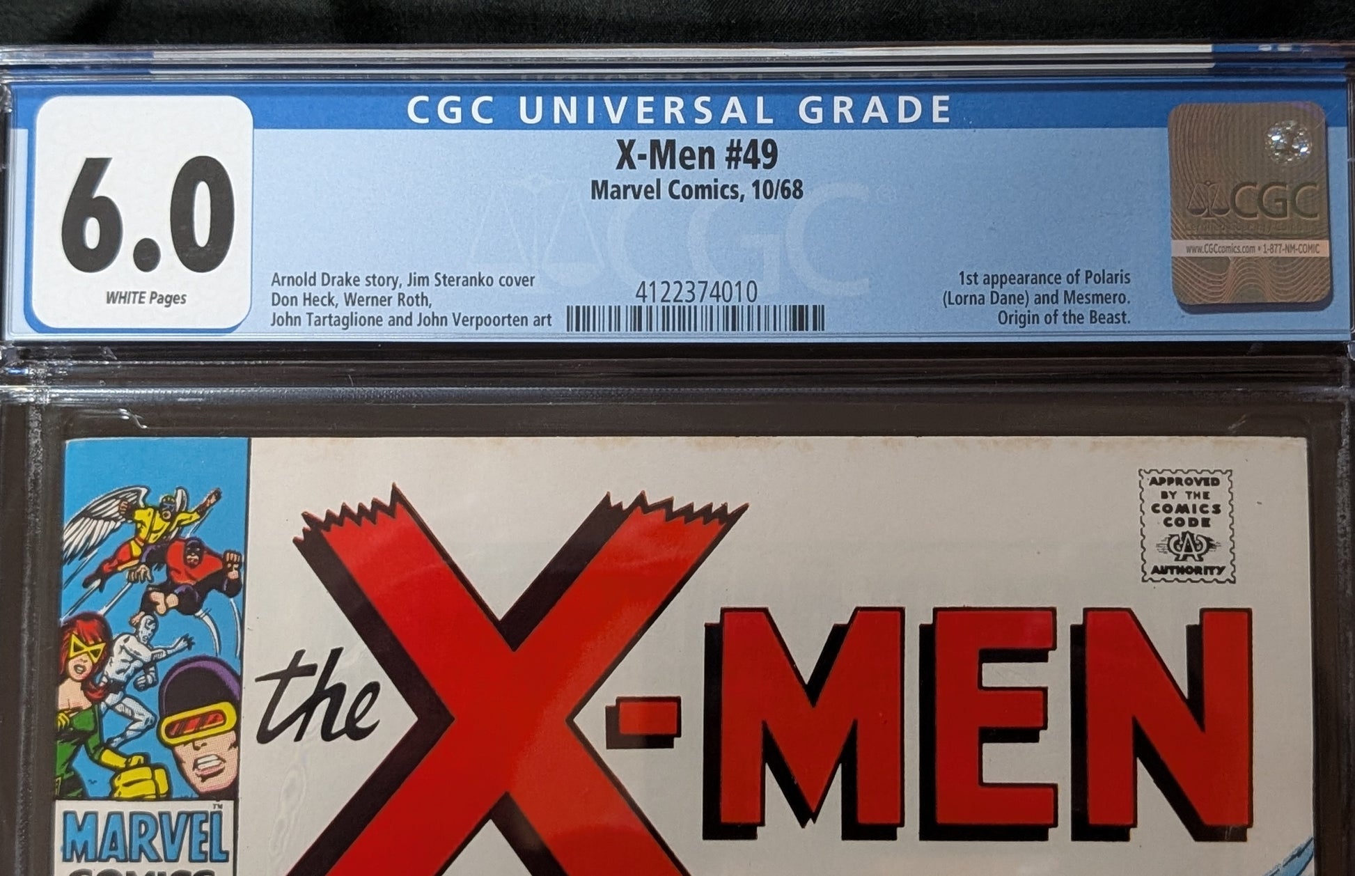X-Men #49 CGC 6.0 (Fine) from 1968 with 1st appearances of Polaris and Mesmero. Origin of the Beast was also included.